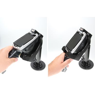 Die Halterung ist sehr stark, das Telefon klopft oder vibriert nicht darin. Die Halterung verfügt über ein Scharnier, dank dem das Telefon jederzeit problemlos horizontal oder vertikal gedreht oder gekippt werden kann. Der Halter wird am Brodit ProClip befestigt.