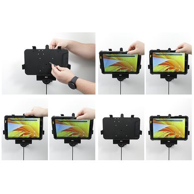Die Halterung ist sehr stabil, das Tablet bleibt nicht darin hängen und vibriert nicht. Die Halterung wird am Brodit ProClip oder an Brodit-Montagesockeln und -Armen befestigt.