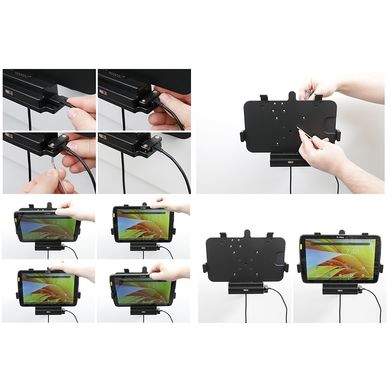 Die Halterung ist sehr stabil, das Tablet bleibt nicht darin hängen und vibriert nicht. Die Halterung wird am Brodit ProClip oder an Brodit-Montagesockeln und -Armen befestigt.