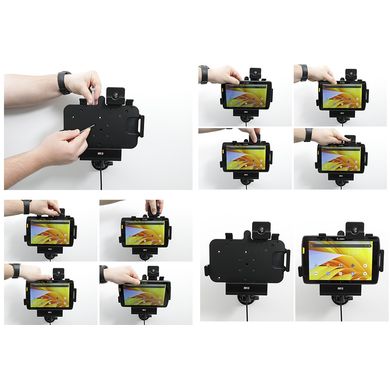 Die Halterung ist sehr stabil, das Tablet bleibt nicht darin hängen und vibriert nicht. Die Halterung wird am Brodit ProClip oder an Brodit Montagefüßen und -armen befestigt.