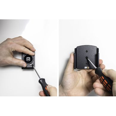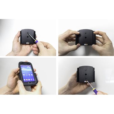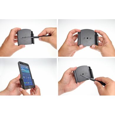 Die Halterung ist sehr stark, das Telefon klopft oder vibriert nicht darin. Die Halterung verfügt über ein Scharnier, dank dem das Telefon jederzeit problemlos horizontal oder vertikal gedreht oder gekippt werden kann. Der Halter wird am Brodit ProClip befestigt.
