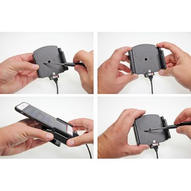 Die Halterung ist sehr stark, das Telefon klopft oder vibriert nicht darin. Die Halterung verfügt über ein Scharnier, dank dem das Telefon jederzeit problemlos horizontal oder vertikal gedreht oder gekippt werden kann. Der Halter wird am Brodit ProClip befestigt.