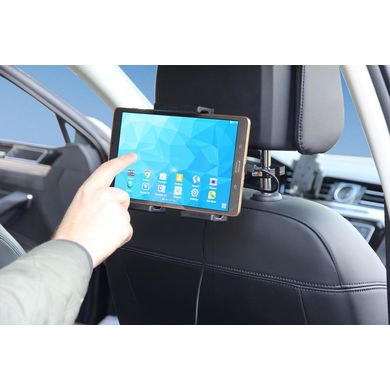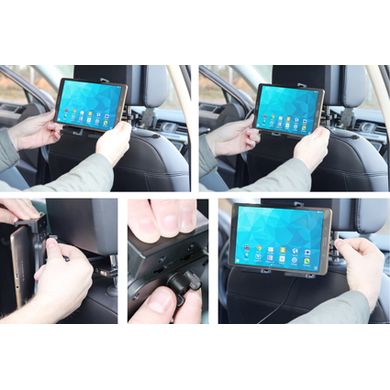 Universeller 120 bis 150 mm breiter Tablet-Halter für das Auto mit USB-C-Ladefunktion. Montage auf dem Armaturenbrett durch den Kauf eines kundenspezifischen ProClips. Hergestellt in Schweden.