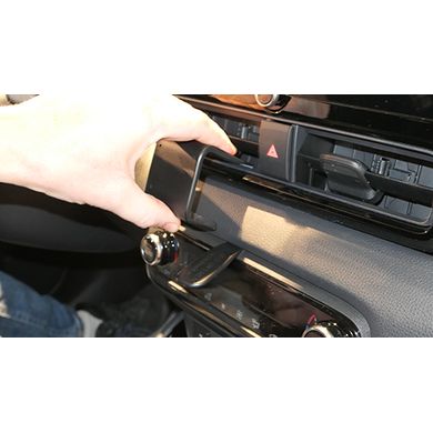 sie in die Fugen des Armaturenbretts des Fahrzeugs einrastet. Der Clip lässt