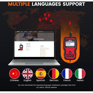 Der VD500-Scanner wurde für Heimwerker, Mechaniker und Händler entwickelt und bietet professionelle Diagnosefunktionen für Fahrzeuge der Marken VW, Skoda, Seat und Audi. DasVD500-Diagnosetool ist standardmäßig in Deutsch und Englisch verfügbar, aber auch Spanisch, Französisch und Italienisch können von der offiziellen Website heruntergeladen werden. Die Software kann auch über das Internet aktualisiert werden, so dass Fehler behoben oder neue Funktionen hinzugefügt werden können. Besuchen Sie einfach die offizielle ANCEL-Website, laden Sie die Software herunter und folgen Sie den einfachen Installationsanweisungen. Der VD500-Scanner bietet während seiner gesamten Lebensdauer kostenlose Software-Updates, um die neuesten Fehler zu beheben oder neue Funktionen hinzuzufügen. Das Gerät verfügt über ein 2,1-Zoll-LCD-Display mit einer Auflösung von 64×64 Pixeln, das eine klare und übersichtliche Anzeige für eine effiziente und benutzerfreundliche OBD2-Diagnose bietet.