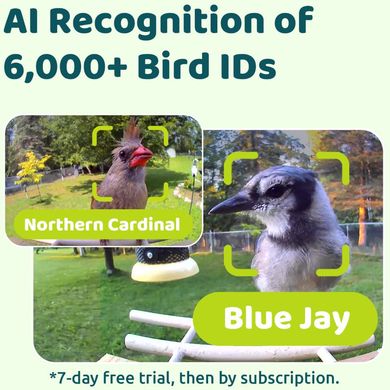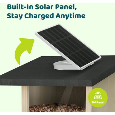 Intelligente Futterstation mit 1080P-Kamera, KI-Erkennung von mehr als 6000 Vogelarten, Solarenergie und mobiler App. Umweltfreundliches Tannenholz, IP66 wasserdicht.