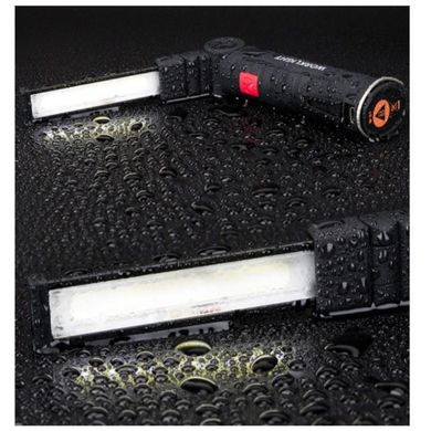 Die Taschenlampe ist mit COB-LEDs ausgestattet, die einen geringen Stromverbrauch bei ausreichender Ausleuchtung gewährleisten. Es ist möglich, die Modi zwischen hoher Leistung, niedriger Leistung und durch Aufleuchten der Spot-LED auf der Vorderseite zu wechseln.