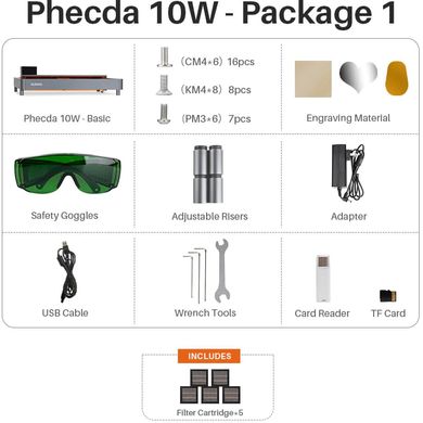 Dieses innovative Design schützt nicht nur Ihre Augen vor schädlichen UV-Strahlen, sondern dient auch als transparente Abdeckung, die den Laser filtert und es Ihnen ermöglicht, die Lichtpunktspur der Gravur zu sehen. Darüber hinaus fungiert sie als Rauchauffangvorrichtung und erhöht die Wirksamkeit des Rauchfilters. Um maximale Sicherheit zu gewährleisten, ist das Gerät mit einer Schutzbrille zum Schutz Ihrer Augen ausgestattet. Sicherheit wird beim ELEGOO Phecda großgeschrieben, denn der integrierte Sensor unterbricht den Betrieb sofort und warnt akustisch, wenn Flammen entdeckt werden. Sollte das Gerät während des Betriebs versehentlich bewegt, gekippt oder umgekippt werden, stoppt es sofort seinen Betrieb und dasWarnsystem wird aktiviert.