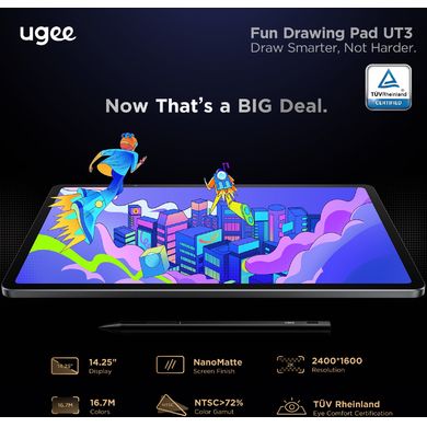 14,25-Zoll Ugee UT3 eigenständiges Zeichentablett ohne Computer, 2.4K Ultra HD Großbildschirm mit vollständig laminiertem Display, Android 14 Betriebssystem.