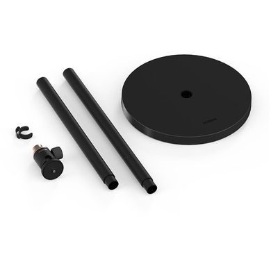 Die Höhe des Ständers ist auf 49 oder 89 cm einstellbar. Der Ständer ist mit einem Sockel von 30 cm Durchmesser ausgestattet, um Stabilität zu gewährleisten. Der Sockel ist mit Silikonpads ausgestattet, die ein Verkratzen des Bodens beim Hantieren mit dem Stativ verhindern.
