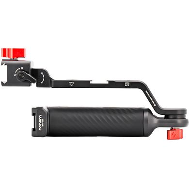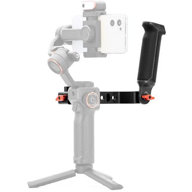 Zusatzgriff passend für Hohem iSteady M6, iSteady M6 Kit, iSteady MT2, iSteady MT2 Kit, Material Aluminium und Gummi, max. Arbeitshöhe 34,5 cm, Gewicht 235 g.