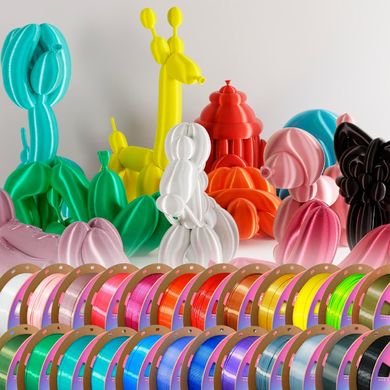 PLA-Filament mit seidig glänzender Oberfläche. Verbesserte Anti-Fragilitätsformel, Druckgeschwindigkeit bis zu 250 mm/s. 1,75 mm, 1 kg, 24 Farben, umweltfreundliche Spule.