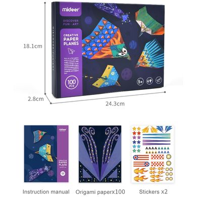 Jedes Flugzeug enthält einen dekorativen Aufkleber. Die Schwalben fliegen toll und in der Packung finden Sie 100 Stück farbiges Papier und 2 Bögen mit Aufklebern.