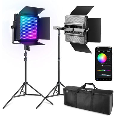 2er-Set leistungsstarkes Bi-Color und RGB Fotolicht, 480× RGB LEDs, 60W, 7300 Lux/1m, Lichttemperatur einstellbar von 2500K bis 8500K