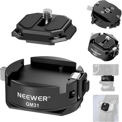 Neewer GM31 ist ein Set aus Schnellwechselplatte und Stativsockel, quadratischer Arca-Typ mit Auto-Locking-System, QR-Kameramontageplatte mit Kamera-Clip