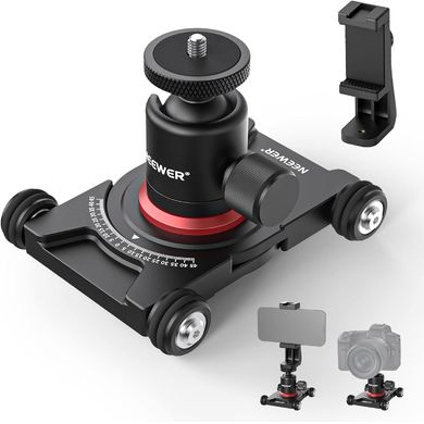 Neewer SD001 manueller „Dolly“ Kamerawagen mit neigbarem Kugelklemmkopf mit 1/4"-Schraube, Neigung ±45°, Telefonhalter 5,5–9 cm