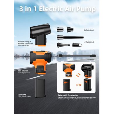 Handliche Kombination aus Kompressor 160 PSI (11 bar) und Staubwedel, Pistolenform, praktische Form, LCD-Display, Powerbank, 5 Modi, Druck bis zu 160 PSI