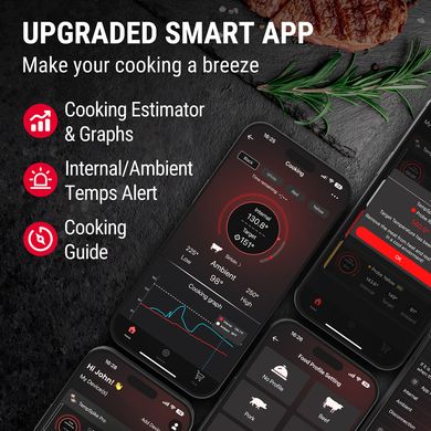 Mit den voreingestellten Rezepten erzielen Sie jedes Mal perfekte Ergebnisse, und die anpassbaren Alarme sorgen dafür, dass Sie nichts verpassen. Die Echtzeitverfolgung gibt Ihnen die absolute Kontrolle über den gesamten Kochvorgang von Anfang bis Ende. Dualband-WiFi (2,4GHz/5GHz) und die drahtlose Bluetooth 5.2-Technologie sorgen für eine stabile und zuverlässige Verbindung mit ausgezeichneter Reichweite. Das Signal zwischen der Sonde und dem Verstärker reicht bis zu 140 Meter, wenn der Deckel des Grills oder Smokers geöffnet ist, und 4–12 Meter, wenn der Deckel geschlossen ist. Zwischen dem Verstärker und Ihrem Smart-Gerät beträgt die Reichweite bis zu 180 Meter über Bluetooth und unbegrenzt über WiFi, so dass Sie sich frei in Haus und Garten bewegen und Ihr kulinarisches Meisterwerk trotzdem im Auge behalten können. Dank der kompakten Abmessungen der Sonde (5,4 mm Durchmesser und 106 mm Länge) und des Verstärkers (101×64×20 mm) lässt er sich leicht verstauen und transportieren. Die robuste Konstruktion und die hochwertigen Materialien gewährleisten eine lange Lebensdauer und Zuverlässigkeit auch bei intensiver Nutzung.