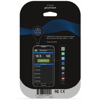 Anemometer zum Anschluss an Ihr Telefon über Kopfhöreranschluss mit kostenloser App für Android und iPhone.