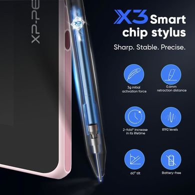 Der neu entwickelte intelligente X3-Chip verarbeitet elektromagnetische Signale effizient und wandelt sie in digitale Daten um. Diese Verbesserung verstärkt die Empfindlichkeit der anfänglichen Aktivierungskraft um das Zehnfache, so dass Sie mit einer sanften Berührung Kunstwerke schaffen können. Der Touch Pen bietet daher ein haptisches Erlebnis, das einem traditionellen Pinsel sehr ähnlich ist. Im Gegensatz dazu beruhte das vorherige Design des Touch Pen auf einem internen Federmechanismus, der Druck erkannte. Dieser Mechanismus führte dazu, dass sich die Feder während des Gebrauchs vertikal bewegte, was die Kontrolle der Pinselstriche erschwerte. Der intelligente X3-Chip, der mit fortschrittlichen Rechenfunktionen ausgestattet ist, verbessert die Struktur des Touchpen-Sensors. Durch diese Änderung wird der Abstand zwischen den Spitzen auf 0,6 mm reduziert, was einen gleichmäßigen Pinselstrich ohne Zittern gewährleistet.