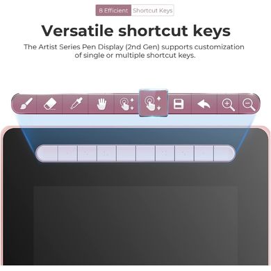 Das neue XPPen Artist 13 (2nd Gen) Tablett verfügt über mehrere anpassbare Ausdruckstasten. Sie können die Funktionen dieser Tasten innerhalb der Software anpassen, wodurch Sie Ihren Arbeitsablauf verbessern und Ihre Effizienz steigern können. Das Display eignet sich nicht nur zum Zeichnen, sondern auch zum Spielen, Ansehen von Filmen oder Videos. Es ist besonders effektiv, wenn Inhalte von kleineren Geräten gespiegelt werden. Außerdem bietet es die Möglichkeit, bei ausgeschaltetem Display zu zeichnen, was einfach durch Drücken der Einschalttaste für drei Sekunden aktiviert werden kann.