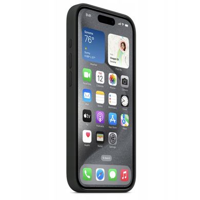 Die iPhone 15 Pro Silikonhülle schmiegt sich eng an die Lautstärketasten, die Seitentaste und die Kurven des Telefons an, ohne viel Volumen hinzuzufügen. Die Hülle kann auch beim kabellosen Laden auf dem Telefon bleiben.