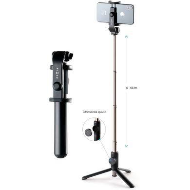 Der Teleskop-Selfie-Stick FIXED Snap mit Stativfunktion ist das ideale Zubehör für Video- und Fotoaufnahmen. Das Gehäuse des Selfie-Sticks besteht aus einer robusten Aluminiumlegierung, und wenn alle vier Teile herausgezogen werden, lässt er sich auf eine Länge von bis zu 56 cm ausziehen. Die Öffnungszange des Kopfes der Stange kann alle Telefone mit einer Breite von 5 – 9 cm aufnehmen, das um 360° drehbare Gelenk ermöglicht es Ihnen, das Telefon in die ideale Position zu bringen, horizontal oder vertikal. Pro Ob Video- oder Fotoaufnahmen aus größerer Entfernung, der Selfie-Stick lässt sich dank seines ausgeklügelten Designs im Handumdrehen in ein praktisches Stativ verwandeln. Sie können den Auslöser Ihrer Kamera bequem mit dem Bluetooth-Steuerungsknopf bedienen, der sich vom Gehäuse der Stange lösen und unabhängig davon in bis zu 10 Metern Entfernung verwenden lässt. Der FIXED Snap Selfie-Stick ist ideal für Reisen und Urlaube. Zusammengeklappt misst er nur 20 cm und passt leicht in eine Tasche oder einen Rucksack.