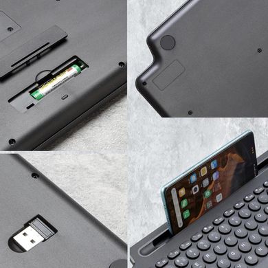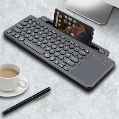 Universelle Tastatur für Desktops und Laptops, Touchpad, Bluetooth, 2,4 GHz, flache Tasten, Smartphone-Slot, schwarz
