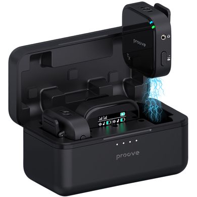 Das Gehäuse des Systems besteht aus robustem ABS-Kunststoff, ist leicht und perfekt tragbar. Dank der kompakten Abmessungen von 104 × 54 × 56 mm können Sie das Mikrofon und den Koffer überallhin mitnehmen. Der hohe Signal-Rausch-Abstand (>70 dB drahtlos, >90 dB über Bluetooth) sorgt für klare Aufnahmen auch in schwierigen Umgebungen. Wenn Sie auf der Suche nach einem vielseitigen Mikrofon für den professionellen Einsatz, die Erstellung von Inhalten oder Live-Übertragungen sind, ist das Proove Studio eine Lösung, die Sie nicht enttäuschen wird.