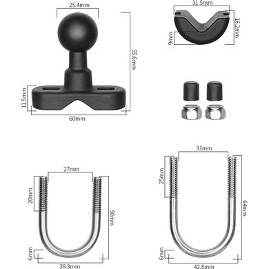 Schelle für Motorrad oder Scooter, Fahrrad, Rollstuhl oder Rohr Ø 19 – 23 mm mit 1" Kugelzapfen