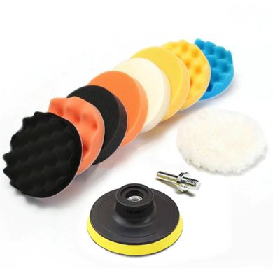 Komplettes Polierset für Akkubohrer, hochwertige Schwämme, Wollkissen, Durchmesser 125 mm, Befestigung am Bohrfutter 8mm