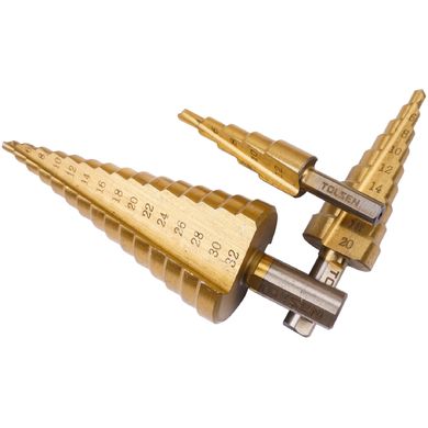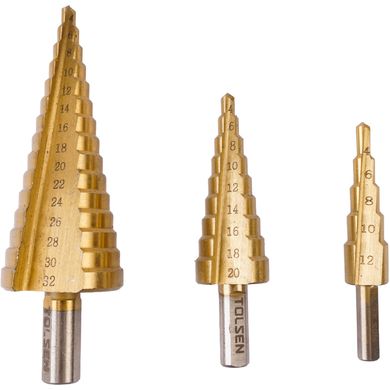 Satz mit 3 Stufenbohrern, Material Schnellarbeitsstahl, gehärtet, titanbeschichtet, für Durchmesser 2 – 32 mm, Bohreraufbewahrungskoffer
