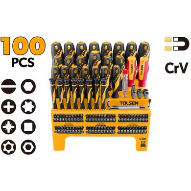 Sie suchen einen vielseitigen Schraubendreher-Satz, der von empfindlicher Elektronik bis hin zu schweren Montagearbeiten alles abdeckt? Das TOLSEN100er-Set ist die richtige Wahl. Es bietet alles, was Profis und Heimwerker brauchen – von präzisen Mikroschraubendrehern bis hin zu robusten Schraubendrehern mit magnetischen Spitzen und ergonomischem Griff. Außerdem ist esübersichtlich in einer Kunststoff-Wandhalterung untergebracht, so dass Sie immer einen perfekten Überblick über jedes Teil haben.