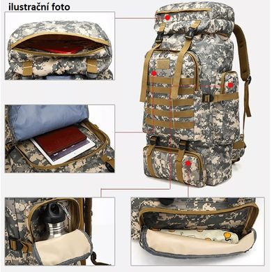 Army-Rucksack, Käfigtyp, Volumen 80l, viele Taschen und Stauraum, MOLLE-System zur Verbindung von Zusatztaschen, Hüftgurte, wasserdicht