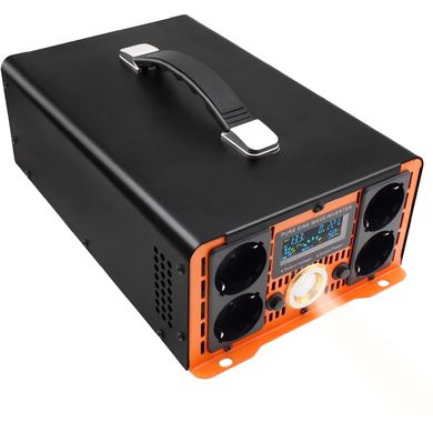 Wechselrichter von 24V auf 230V, Ausgang 4× Steckdose 230V, Versorgung aus Autobatterie, Leistung 3000W, kurzzeitig bis 6000W, 2× Lüfter, reine Sinuswelle, LCD, LED Licht