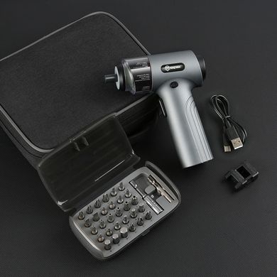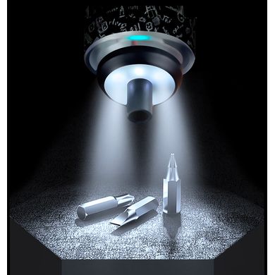 Praktischer Elektroschrauber mit 32 Bits, max. Drehzahl 200 U/min, Akkukapazität 2500 mAh, LED-Licht, Touch Control