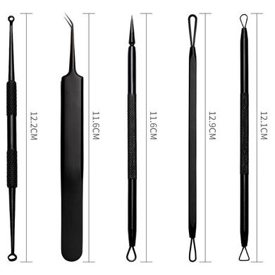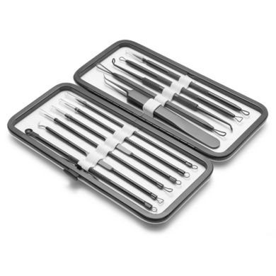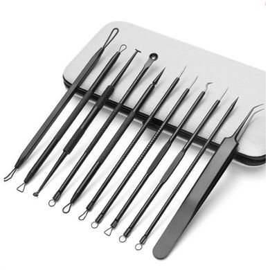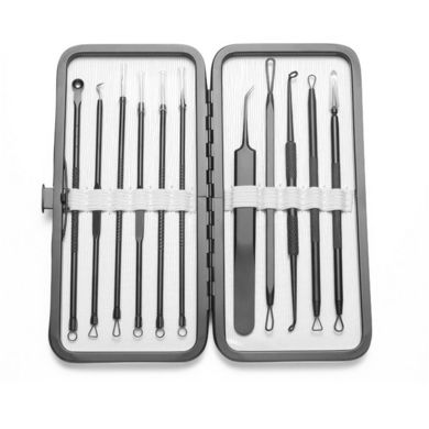 11-teiliges Set aus doppelseitigen Ösen, Nadeln und Pinzetten zur sicheren Entfernung von Mitessern und Pickeln, inklusive Tragetasche