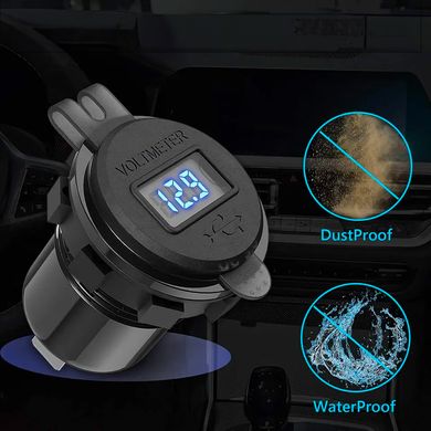 Eingebaute Steckdose mit Voltmeter, geeignet für MOTO und Autos, zwei USB-Anschlüsse, PD und QC 3.0 Unterstützung, blaues LCD, Einbauloch 30 mm