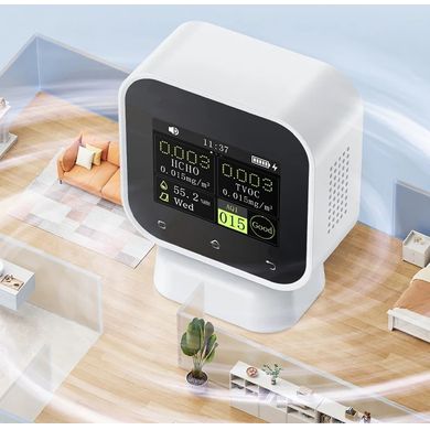 Der FNIRSI SFD-02 ist ein intelligenterportabler Luftqualitätsmonitor , der in Echtzeit die Werte von Formaldehyd (HCHO) und flüchtigen organischen Verbindungen (TVOC) überwachen kann und außerdem die aktuelle Uhrzeit und Luftfeuchtigkeitanzeigt. Seine kompakte Größe und sein Touchscreen-Display machen ihn zur idealen Wahl für alle, die die Gesundheit ihrer Wohnung, ihres Büros oder anderer Innenräume**kontrollieren möchten.